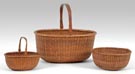 Lot# 257, 258, & 259: 3 Nantucket Baskets - L - Oval. Some loss. Sold Individually. Nice patina. Ht. 5 1/2" W 6 1/4", C - Large oval. Some loss. Nice patina. Ht. 12" W 12 1/2", R - Round. Label reads "Lightship Basket Made by W.D. Appleton Nantucket, Mass." Old break & some loss. Nice patina. 7" round.