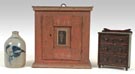 Lot #321:Early Red Painted Hanging Cupboard - Old surface, very good. 20" x 19"