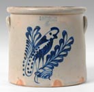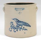 Lot #300: F. B. Norton Worcester Mass - 5 Gal Crock w/ Bird. Minor hairline near handle. 12"