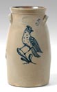 Lot #251: John Burger Jr. 5 Gallon Churn w/ Bird - 10" crack on side and back. 18"