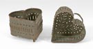Lot #342A: 2 Cheese Strainers - 19th Century pierced tin, heart shaped. Ht. 4" W 3 3/4" D 2 1/2"
