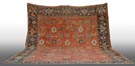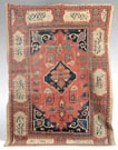 Lot #190: Kazak Style - old repairs, edge loss. 52" x 72"