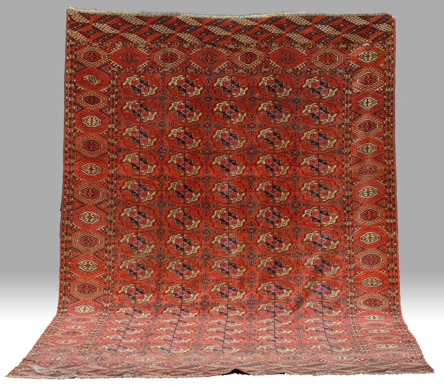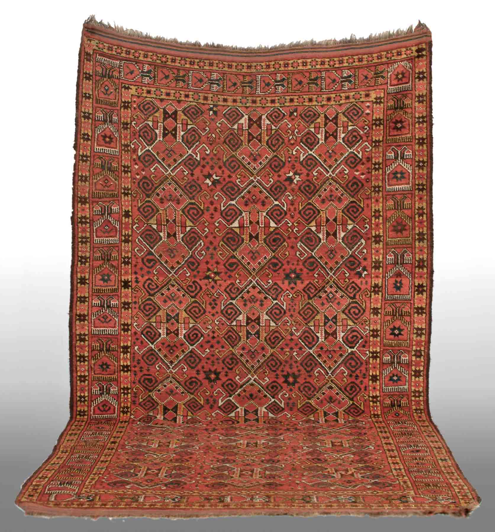 Lot #186: Oushak Antique Rug - 19th century. Nice even pile. One small 1/2" hole. Descended in the Van Schoonhoven family, Troy, NY. 11'8" x 13'5"