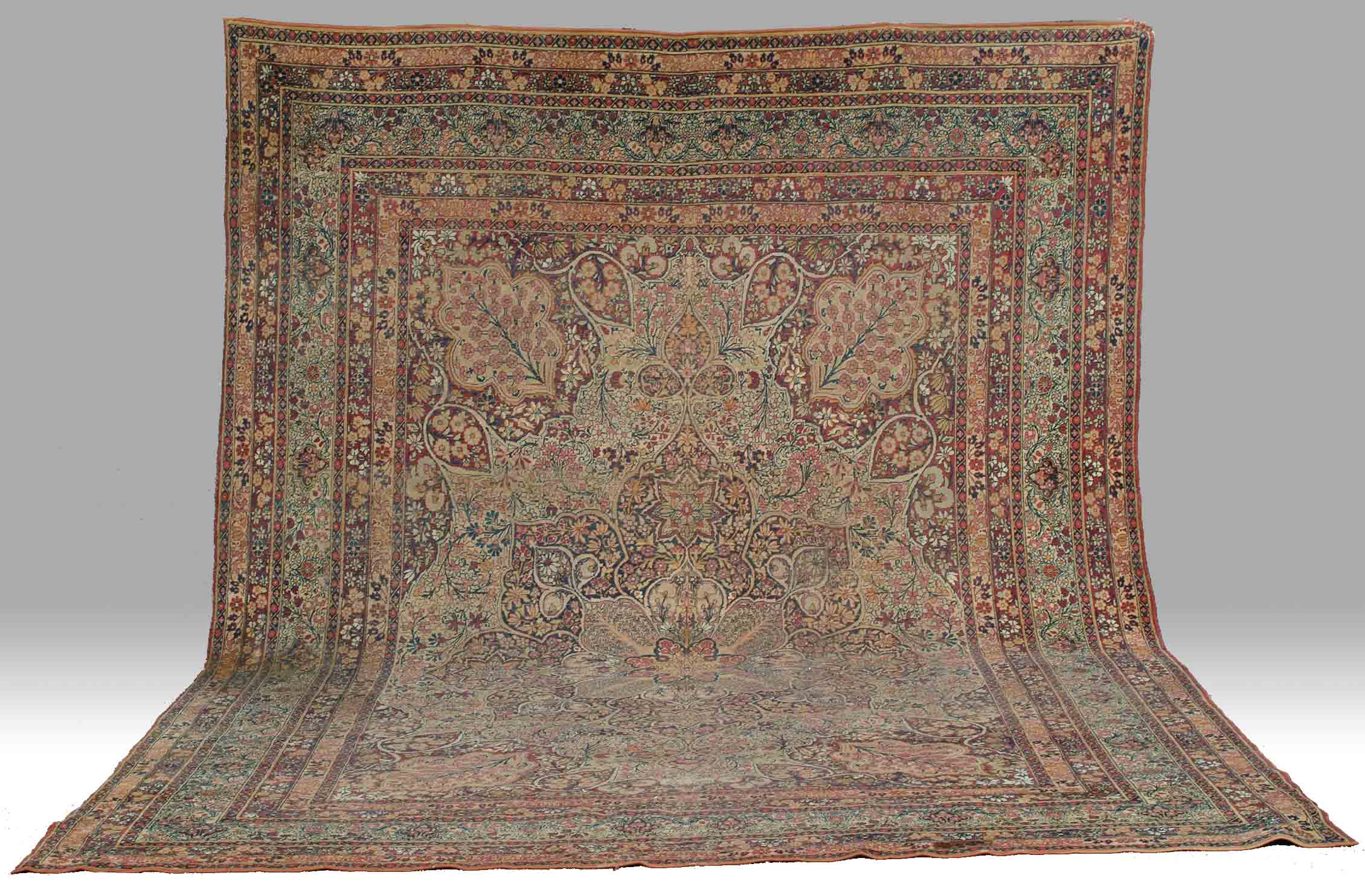 Lot #189: Kirman - Some areas of wear & loss. 9' 8" x 14' 5"