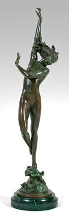 Sgn. Harriet W. Frishmuth1925 © (1880 - 1980, American) Bronze - "Crest of the Wave" Greenish brown patina on a black marble base. Stamped Gorham Foundary. Excellent condition. 21 1/2"
