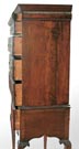 Cherry Queen Anne Highboy - Original period brasses, missing one bail. Minor old repairs. Old finish with traces of original red. Ht. 5'10" W 36" D19"