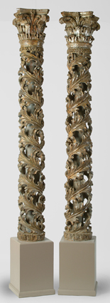 Pair of 18th Cent. Carved Italian Columns - Italian,carved, painted & guilded accanthus leaves. Deaccessed from Memorial Art Gallery. Very good. Ht. 31" W 37" D 22"