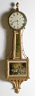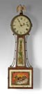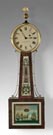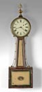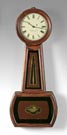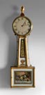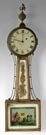 Lot #56 - Elmer O. Stennes Banjo Clock (Weymouth, Mass.)Cross banded mahogany case, stamped "24." Signed & painted metal dial. Reverse painted gold leaf tablets depicting the naval battle scene of the War of 1812.. Movement signed E. Howard & Co. Purchased directly from Elmer Stennes in the early 1960's, one owner. A pristine example. Ht. 34" Est. $2-3,000