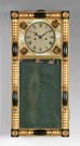 Lot #52 - Fine & Rare Waltham Gilt Front Girandole Wall Clock Mahogany & gilt wood case w/original finish & gilding, some wear to gilding. Original signed & painted metal dial. Original reverse painted tablets depicting Aurora. Thermometer in throat glass. Stamped # 9, only 24 were produced. 8 day timepiece, movement signed “Waltham Watch Co. U.S.A.” A choice example. Ht. 49" Est. $10-Est. $15,000