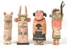 Lot #215 - Three Hopi Cornhusk Dolls - - Composed of wood, cornhusk & string. L to R: Ht. 8", 5", 7" Est. $3-500 |