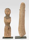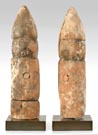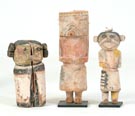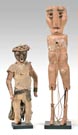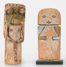 Lot #131 - Two Carved Hopi Figures - 18th Century. Cottonwood w/'heart' plugs. Pictured in the "Hopi Journal of Alexander Stephen." Columbia University Press, 1936. Each Ht. 12 1/2"Est. $15-25,000 |