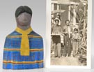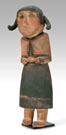 Lot #206 - Carved Semiloe Doll (R) - Wood, handpainted. Postcard shows the artist holding dolls. Ht. 4 1/2" Est. $2-300 |