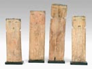Lot #165, 165A, 165B, 165C - Four Acoma Flat Style Kachinas - All Late 19th century. Black ptd. hair, eyes & mouth still visible, some traces of red paint on face. Provenance Skinner sale 2074, September 15, 2001 p. 52. Left to Right: Ht. 9 1/2". Ht. 11". Ht. 13". Ht. 10". Est. $800-1,200 each