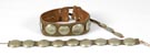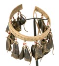 Lot #172 - Caribou Inuit Brow Band - Composed of hammered brass, bead strands, hide strap joined w/a button, small teeth. Provenance Sotheby's, November 30, 1995, p. 250. Ht. 9" Dia. 7" Est. $2-300 |