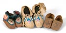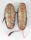 Lot #140 - Seneca Childs Moccasins (L) - Beaded buckskin & fabric. Bead & fabric loss. L 4 1/2" Est. $1-200