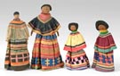 Lot #232 - Three Seminole Dolls - Early to mid 20th cent. Palmetto body & face. Colorful cloth outfit in good cond., beaded necklace & earrings. "Antique Native American Dolls" by Molloy-Blitz Tribal. Some wear to feet. L to R: Ht. 11 1/2", 10" & 12 1/2" Est. $1-200 |