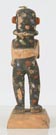 Lot #174 - Fire god Kachina Doll - Composed of wood, black pigment w/red & yellow dots, carved ears. Holding carved animal on back. Ht. 5 1/2" on stand. Est. $1,000-1,500 |