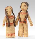Lot #216 - Two Cornhusk Dolls - Composed of hide, fabric clothes & yarn hair. Ht. 11" Est. $2-300 |