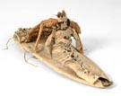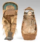 Lot #214 - Klamath Cradleboard w/Doll - N. Ca. or S. Or. Composed of hide, twigs, shells on back. Est. $1-1,500 |
