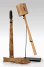 Lot #238 - Wooden Toys - (L) Wood Fishing Pole, Decoy. L 6" (fish) (R) Iroquios Toy Rattle, elm wood. L 11" Est. $1-200