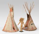 Lot #237 - Tepee - (L) Buckskin Toy Tepee, ptd. white & red. Ht. 18" Est. $5-700