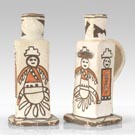 Lot #217 - Pair of Zuni Candlesticks - Clay w/ptd. figures. Hairline cracks in glaze. Ht. 7" Est. $3-500 |