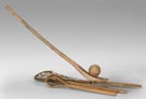 Lot #230 - Group of Toys - Incl. 3 lacrosse sticks, L 20" to 30"; game ball, 3" dia & stick, L 34" Est. $2-300 |
