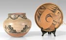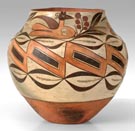 Lot #136 - Polacca Olla, Zuni Design (L) - © 1880. Very good. Ht. 8 1/2" W 10 1/2" Est. $1,500-2,000