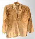 Lot #245 - Woodlands Buckskin Boys Shirt - Fringed, 2 pockets, stitched blue detail. L 23" Est. $2-300 |