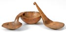 Lot #250 - Native American Burl Group - Bowl, Ht. 3" Dia. 7 1/2". Two Ladles. (L) Inscribed on reverse "N. Patterson. Onondaga, Nedrow NY." Ht. 10" W 6" (R) Ht. 11" W 6" Est. $2-300 |