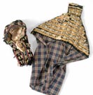 Lot #164 - Woodlands Female Doll - Last quarter 19th cent. Composed of buckskin & fabric w/beaded necklace. From Mary Dahl Coll. Pictured in "Antique Native American Dolls" by Molloy-Blitz Tribal. Minor bead loss, missing one earring. Ht. 14 1/2" Est. $2-3,000 |