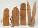 Lot #260 - Group of Cradle Boards - 19th Cent. L to R: Pueblo board, Navajo double boards, two Pueblo boards. Pictured in "The Art of America's Southwest Indians: by Gary Allen Hood p. 102. L to R Ht. 30", 30", 23", 23" $3-500