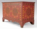 Rare Paint Decorated Blanket Chest - Early 19th century. Painted w/pinwheels & stylized hearts. Some areas of wear. Top strip of molding not original.