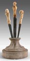 Rare Set of Carved Bone-Handle Knives - 18th cent. Washington, Franklin & Lafayette knives in wood stand.