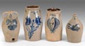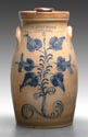 Center L - W. Roberts, Binghamton, Stoneware Churn - Cobalt double flower decoration.