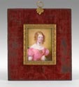 19th Century Miniature Painting on Ivory - Young girl in pink dress.