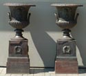 Cast Iron George Washington Urns - Some breaks to corners. Ht. 52" W 26"