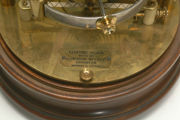 Electric Clock Marked on metal plate inside: Made by The Reason Mfg. Co., Brighton, Murday's Patent (Click Any Photo To Enlarge) Return To Clock Auction