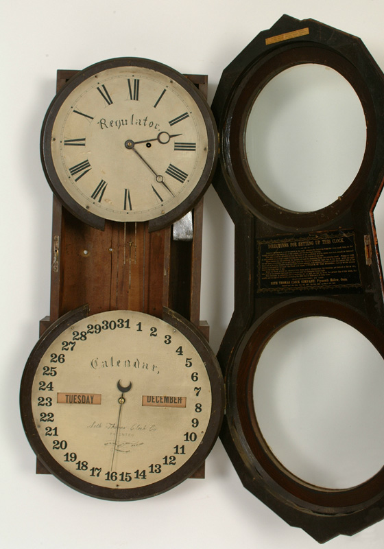 Details Seth Thomas Double Dial Calendar Clock 40" ht