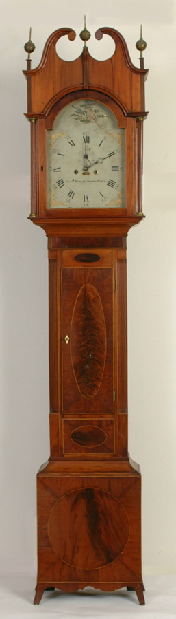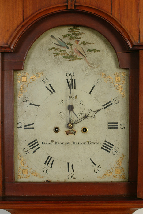 Details Isaac Brokaw, Bridge Town Tallcase Clock 8' ht, 17" w, 9" d (Click Any Photo Below To Enlarge) RETURN TO CLOCK AUCTION