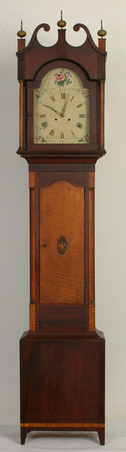 Details Tiger Maple & Cherry, w/eagle inlay 8' 7" ht, 19" w, 10" d (Click Any Photo Below To Enlarge) RETURN TO CLOCK AUCTION