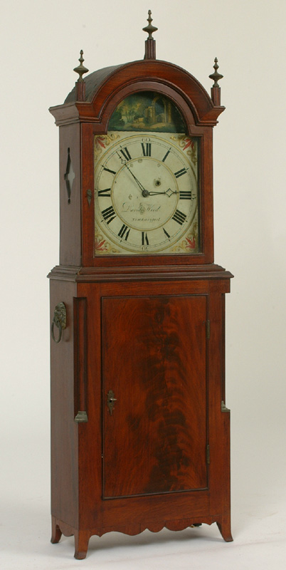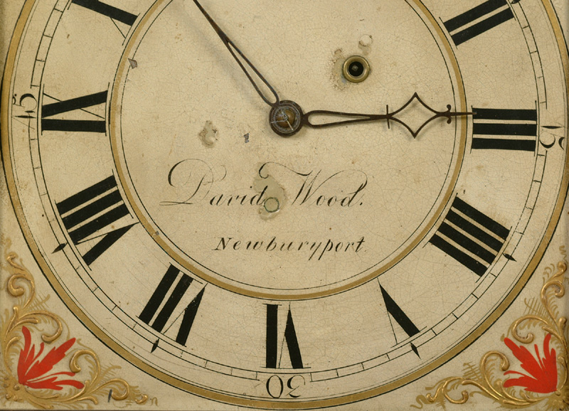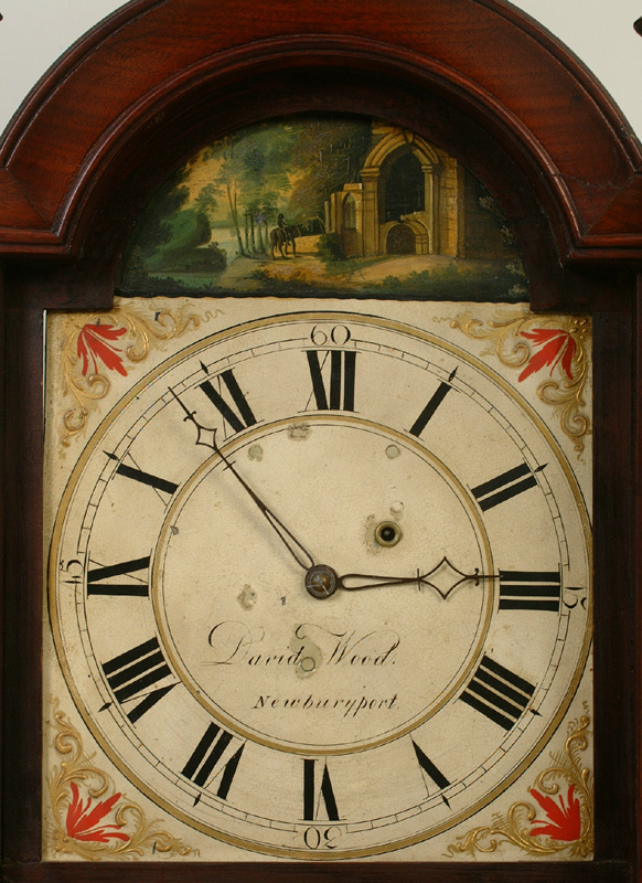 DETAILS DAVID WOOD, NEWBURYPORT SHELF CLOCK 40" X 13" (CLICK ANY PHOTO BELOW TO ENLARGE)