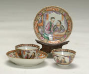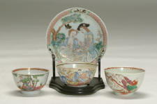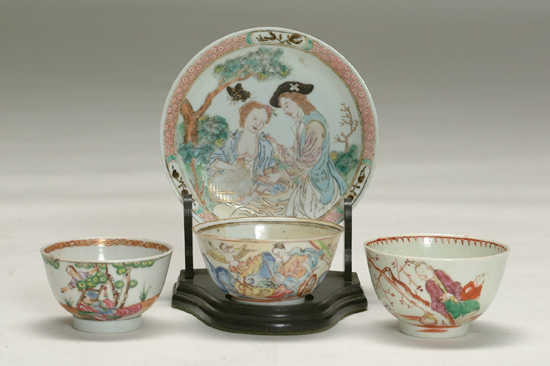 LOT 70. RARE FAMILLE-ROSE EUROPEAN SUBJECT TEA BOWL ALLEGORY