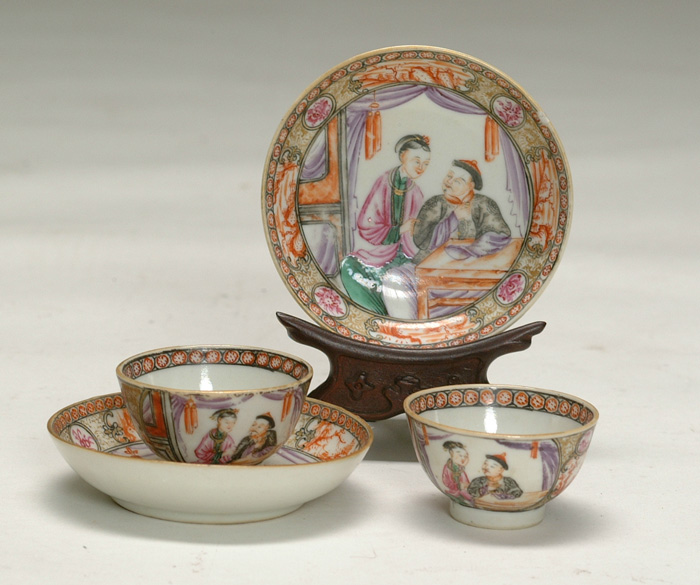 English soft paste, family scene. Height: 1 3/4", Diameter