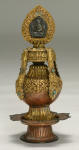 SOUTHEAST ASIAN TURQUOISE AND BRASS-MOUNTED COPPER CENSER ON