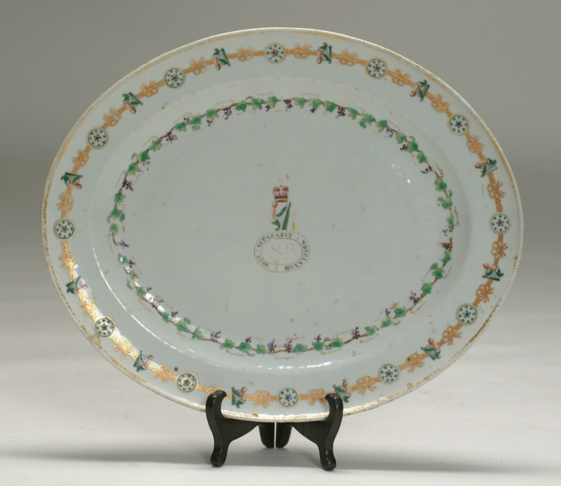 CHINESE EXPORT ARMORIAL OVAL PLATTER,