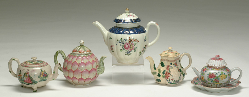 Lot 333. CHINESE EXPORT FAMILLE-ROSE MOLDED CHRYSANTHEMUM TEAPOT AND