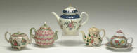 Circa 1740, Hair crack and restored chip to stand and teapot rim.