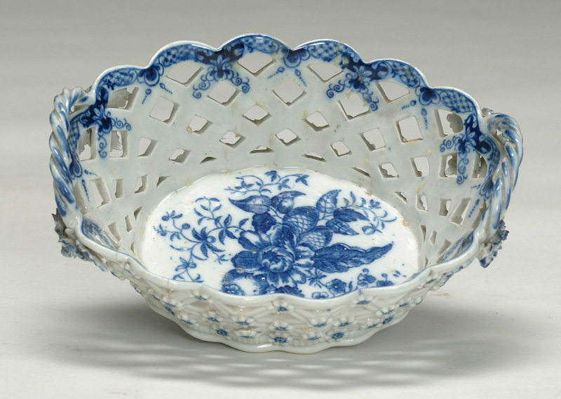BLUE AND WHITE BASKET, Circa 1775, �Pine Cone� pattern, Two sections restored about 3/4",