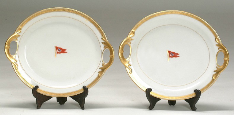 HAVILAND LIMOGES DESSERT DISHES, �St. George� w/flag design in center, Diameter: 10 1/2",